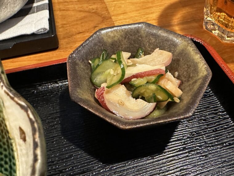 - タコときゅうりの和え物は、さっぱりと