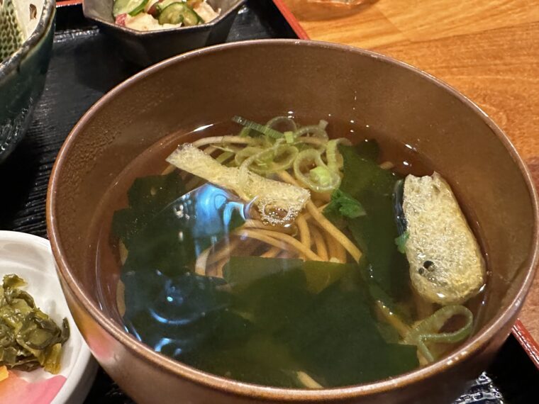 のろしのランチは味噌汁やミニ沖縄そばではなく、日本そばなのも他と違って嬉しいんよな。
