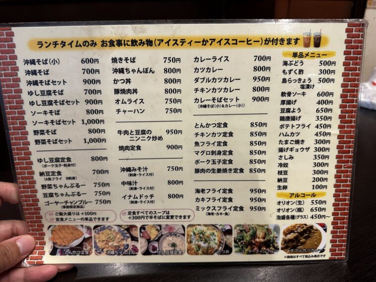 定食、沖縄そば、カレー、チャンプルー、丼物までなんでも揃うラインナップ。