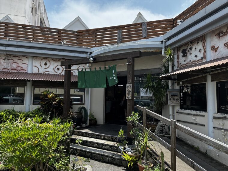 沖縄の古民家を思わせる外観。駐車場も広く、ファミリーや観光客にも優しい雰囲気。