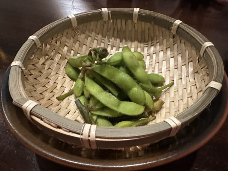まずは子どもたちが好きな茶豆の塩ゆでから。香ばしいかおりがスタートにいい。