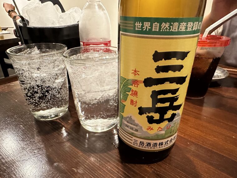 今回は鹿児島の焼酎「三岳」をソーダ割りで。料理の味を引き立てるすっきりした飲み口でおすすめ。