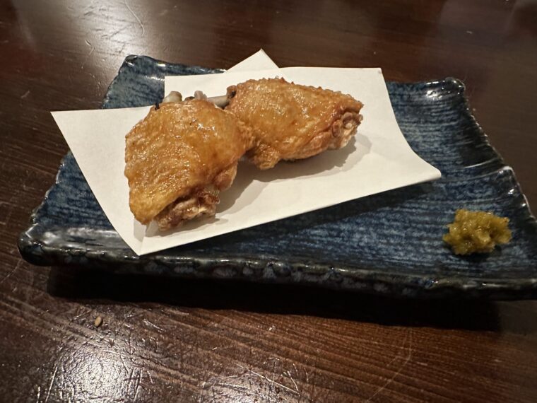続いて「手羽先のカリカリ唐揚げ」。パリッと揚がった皮と、シンプルな味にジューシーさがたまりません。