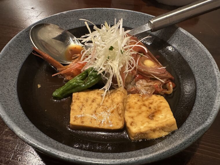 そして今回の個人的No.1は、「金目鯛の煮付け」。身のふっくら感と煮汁のバランスが絶妙で焼酎との相性もよし。