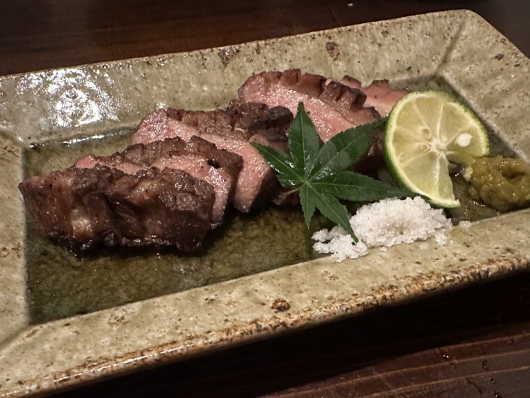 こちらは「牛タンの炭火焼き」。噛むたびに旨味が溢れ、添えられたかぼすや柚子胡椒で味変も楽しめるね。