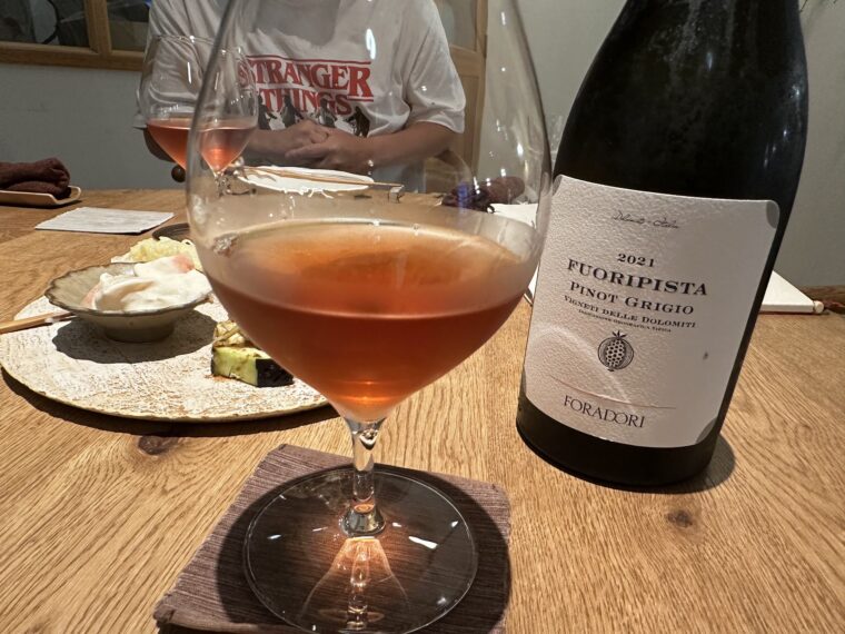 和洋葡 yoshiの魅力のひとつが、店主自ら選んだ豊富なワインセレクト。この日のグラスワインは、イタリアを中心に、赤ワインの深み、白ワインの爽やかさ、そして近年注目のオレンジワインまで幅広く揃います。